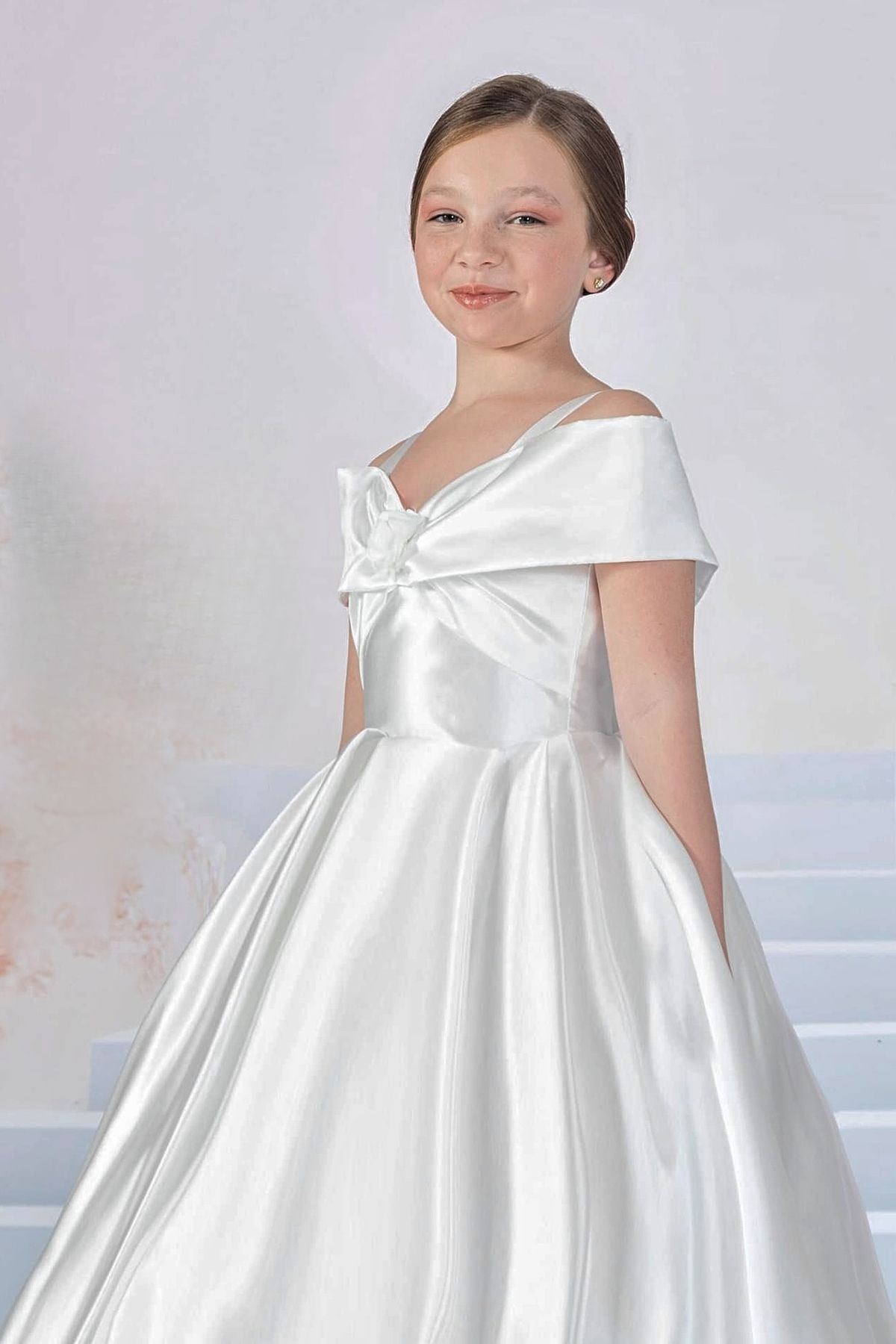 Abito in mikado color bianco, smanicato con spalline, gonna a campana con cerchio. Made in Italy rifinito nei minimi dettagli.